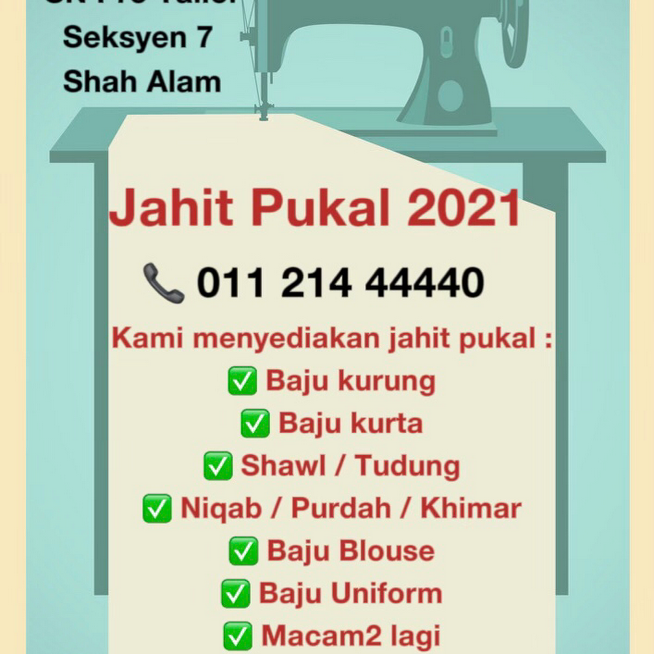 Assalamualikum dan salam sejahtera hai uolls just nak bagitahu Mesin Jahit Tepi Anbang telah dibuka kembali tempahan untuk edisi MAC 2018. C-9-G Jalan Serai wangi L16L Alam Avenue 2 Seksyen 16.